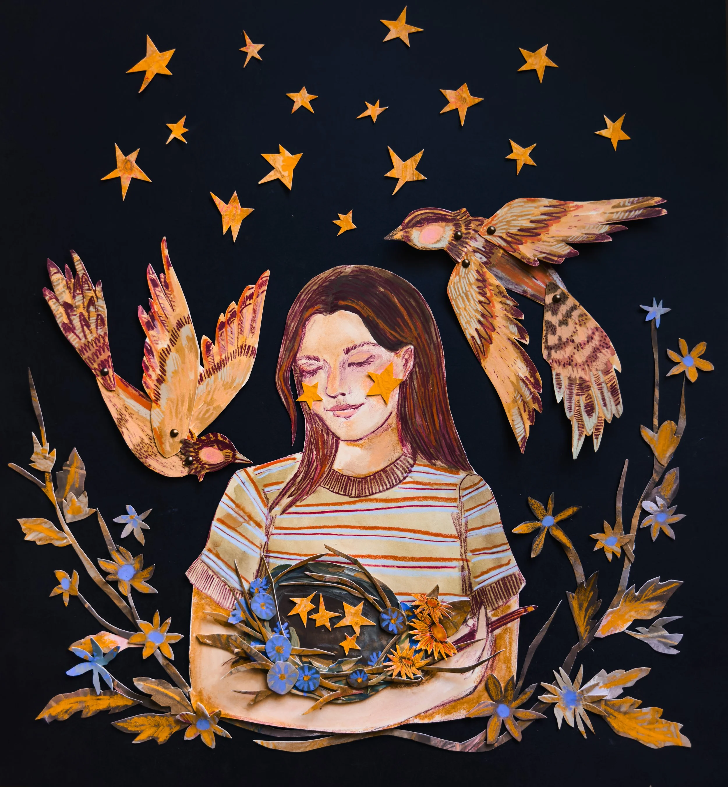 Abby is an illustration artist living in Western North Carolina with her family and three cats. She works with gouache, colored pencils, wax pastels, and collaging original illustrations together to create whimsical scenes. Each piece aims to tell a story that leaves one feeling a sense of nostalgia and warmth. She is currently working on building an illustration portfolio and aspiring to become a children’s author and illustrator.